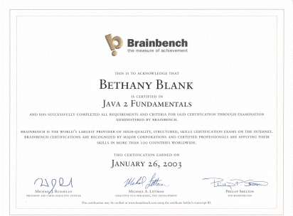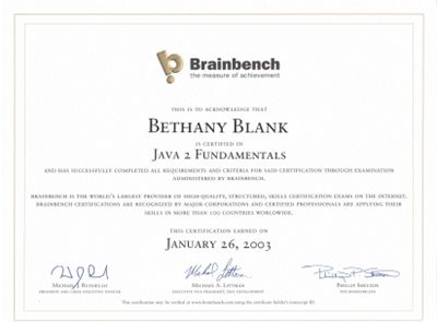 Brainbench Sample Certificate