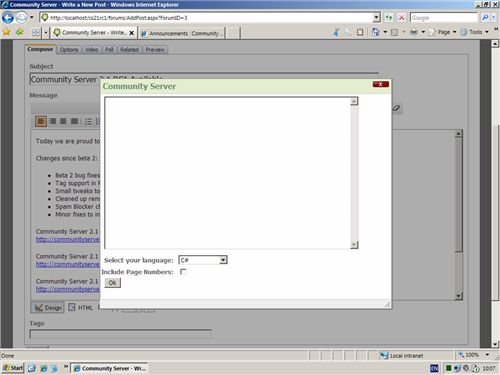 Modal window to insert code in a post