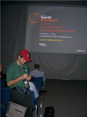 Ένας expert (Ask-The-Experts που λένε) περιμένει να ξεκινήσει την ομιλία της η Kimberly Tripp