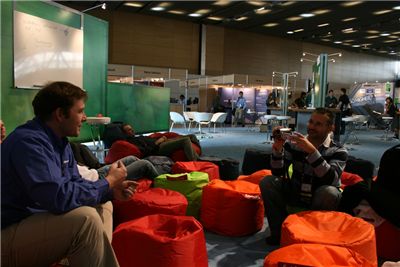 Ο Μάνος Κελαϊδίτης (KelMain) ενώ πέρνει συνέντευξη από τον Clemens Vasters